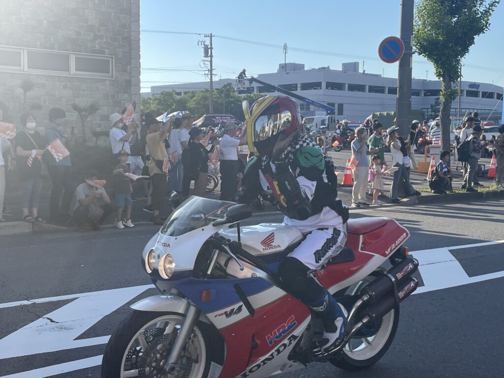 沢山の熱い声援の中、末松市長、田中会頭、長谷川会長、森青年部会長を乗せた車が出発し、全国から集まったバイク約533台とライダーが、鈴鹿ハンター特設会場から鈴鹿サーキットを目指し走行しました。バイクが一列に走る圧巻の光景は、夏の鈴鹿の風物詩。今年も圧巻のパレードでした。皆様、ご協力ありがとうございました。